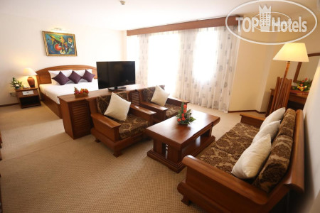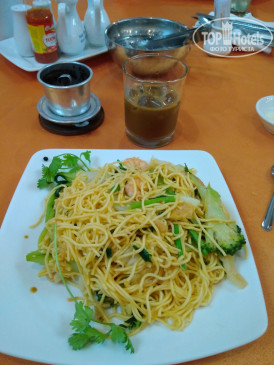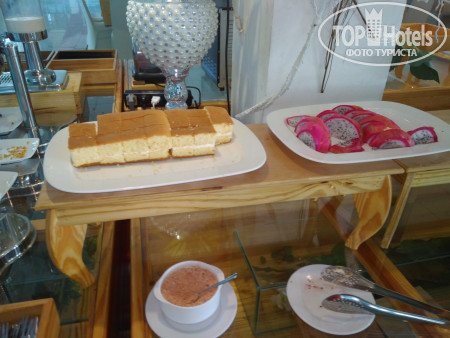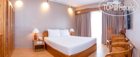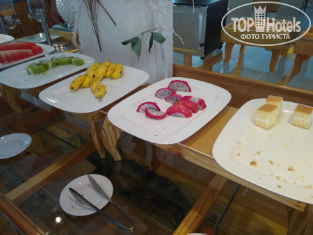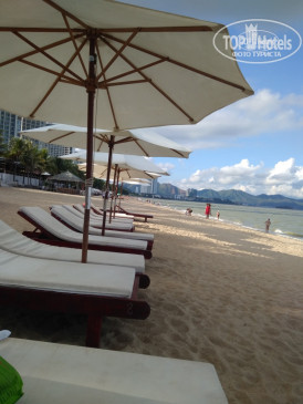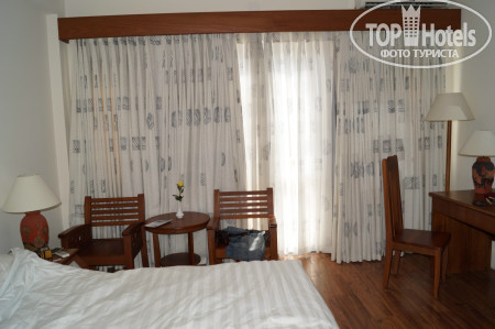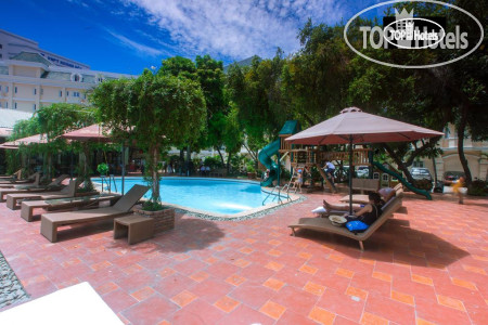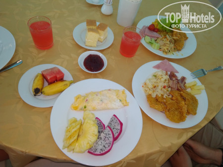 При выборе отеля было три требования: наличие балкона, хорошие завтраки и бассейн для ребенка. Сразу по балкону: балкон малюсенький, посидеть негде, но покурить можно. На балконе натянута веревка для сушки белья, но для троих человек еë мало, но так как на самом балконе стоит внешняя часть кондиционера и дует прямо на эту веревку, то сохло всë быстро. У нас балкон выходил на замороженную стройку и корт, на котором с утра до вечера шли игры, но нам это не мешало, шумоизоляция присутствует. Порадовались, что балкон не на дорогу, там движение и постоянные сигналы машин и байков. Номер тесноват на троих, не хватало ещë стульчика и кресла, но для тройки нормально. Мебель в отличном состоянии, есть чайник, чашки, кофе, чай, воду клали регулярно. Само собой фен, шампунь, гель, одноразовые щетки, расчески, были тапки (правда двое на троих), халатов нет. Санузел нормальный по размеру, ванна, не душевая кабинка. Полотенца меняли если бросить их на пол, постельное не поменяли не разу, но нас не сильно это напрягло. Номер убирали без фанатизма, но опять таки, нас это не напрягало, грязно точно не было. Теперь по завтракам: 5+. Понятно что в тройке не было морепродуктов, но в остальном просто отлично: фрукты (бананы, арбузы, ананасы, драгоны, гуава, папайя), 1-2 вида десертов, чай, кофе приличный на вкус, соки в меру разбавленные, овощи, мясо разного вида и приготовления, лапша, рис, готовили яичницу, разливали супчик, степень остроты которого можно было регулировать самостоятельно. Даже для привередливых русских детей, которые нормальную еду не едят была картошка фри, спрингроллы, хлопья... Приготовлено всë отлично, всë свежее и хватало. Единственно, что завтрак до 9 часов, но, зато повод не проспать пол дня🤣. Днем в этом же ресторане можно было заказать пиццу, картошку и т.п. Бассейна два - мелкий 1,3 и большой 2,2 и длиной метров 15. Лежаков возле бассейна штук 10, но я не видела что они прям заняты были. Про пляжные полотенца сказать точно не могу - я тут в отзывах прочитала, что их нет и мы не спрашивали, но потом сторожилы отеля, которые в нем отдыхают не в первый раз, сказали что есть на ресепшен, но я и не люблю таскаться с ними, так что даже не стала уточнять. Про пляж: ходьбы 5 минут, потом еще 5 минут пройти и поискать свободный лежак. Своих лежаков у отеля нет, естественно, стоят 300т за пару. Дорога до пляжа довольно комфортная, ну если не считать оживленной проезжей части перед Лотосом, перейти которую даже по переходу тот ещë квест, но это общеизвестная азиатская проблема. Очень удобное расположение отеля: утром 10 минут влево и ты на пляже, вечером 7 минут прямо и ты на улочку с кафе, магазинами, ночным рынком. Короче, если поеду во Вьетнам еще раз, то даже не буду отель выбирать - однозначно вернусь в этот.
