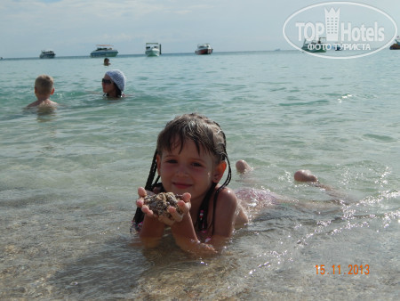 Море было чистое,берег песчаный,заход удобный. Народу относительно немного, в основном иностранцы.Место тихое,можно подремать на шезлонге или просто наслаждаться видами на море. По вечерам в 18.30 на пляже проходит огненное шоу.